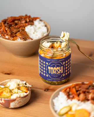 Welcome to Torshi, where every jar is a taste of home. Our small batches of handcrafted Persian-style pickled vegetables are made with the finest, freshest ingredients and no preservatives. We pride ourselves on preserving the authenticity and quality of this beloved tradition.