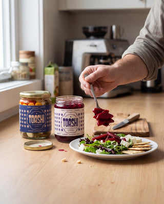 Welcome to Torshi, where every jar is a taste of home. Our small batches of handcrafted Persian-style pickled vegetables are made with the finest, freshest ingredients and no preservatives. We pride ourselves on preserving the authenticity and quality of this beloved tradition.