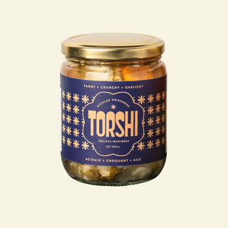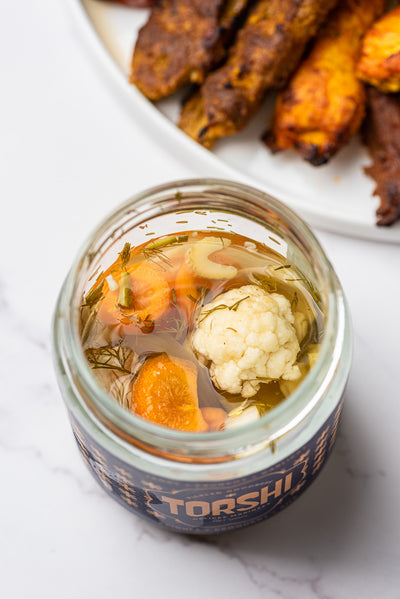 Torshi is a crunchy, tangy mix of vegetables fermented in organic apple cider vinegar using a traditional Persian method. It adds big flavor with minimal calories and zero added sugar—perfect beside eggs, meats, salads, sandwiches, and boards. Choose any jars you like and build a bundle that fits your fridge and your goals.